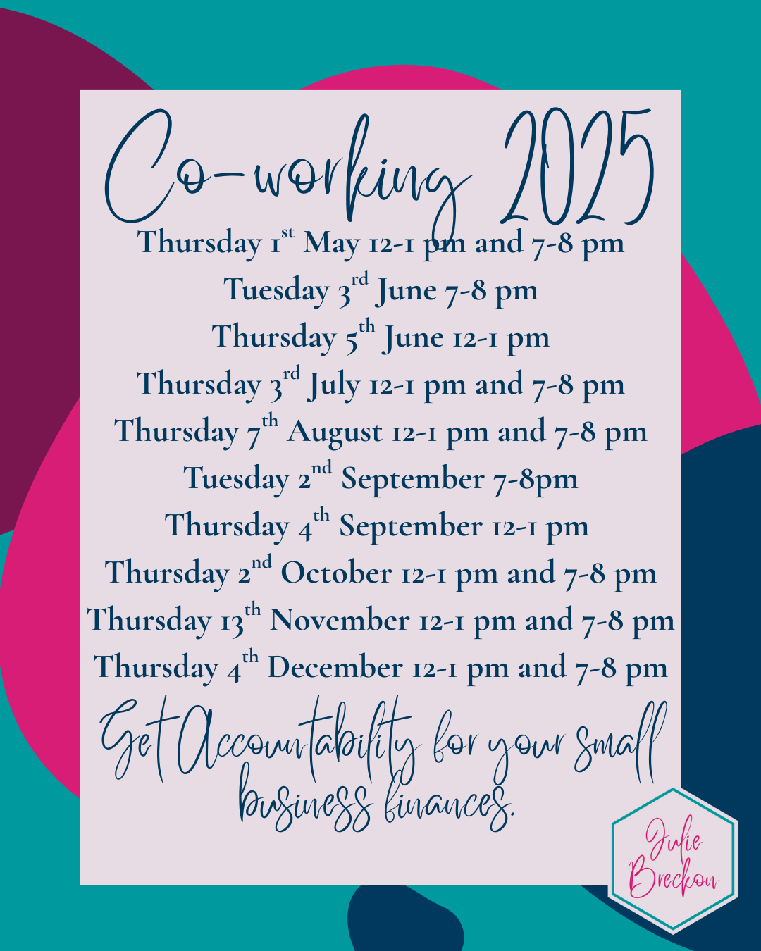 One co-working session each month Delivered online via Zoom Small group session Expert accountant on hand Like-minded business owners to chat to Friendly help and advice Accountability